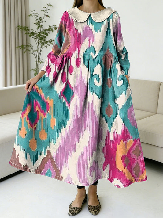 Women's Peter Pan Collar Long-sleeved Loose-fitting Casual Denim Dress