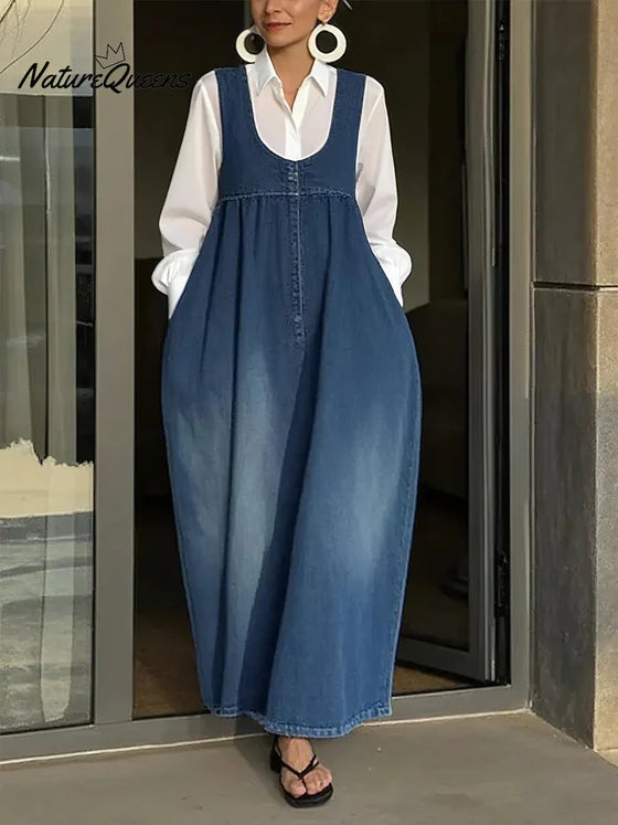 Women's Sleeveless Casual Loose Denim Vest Dress