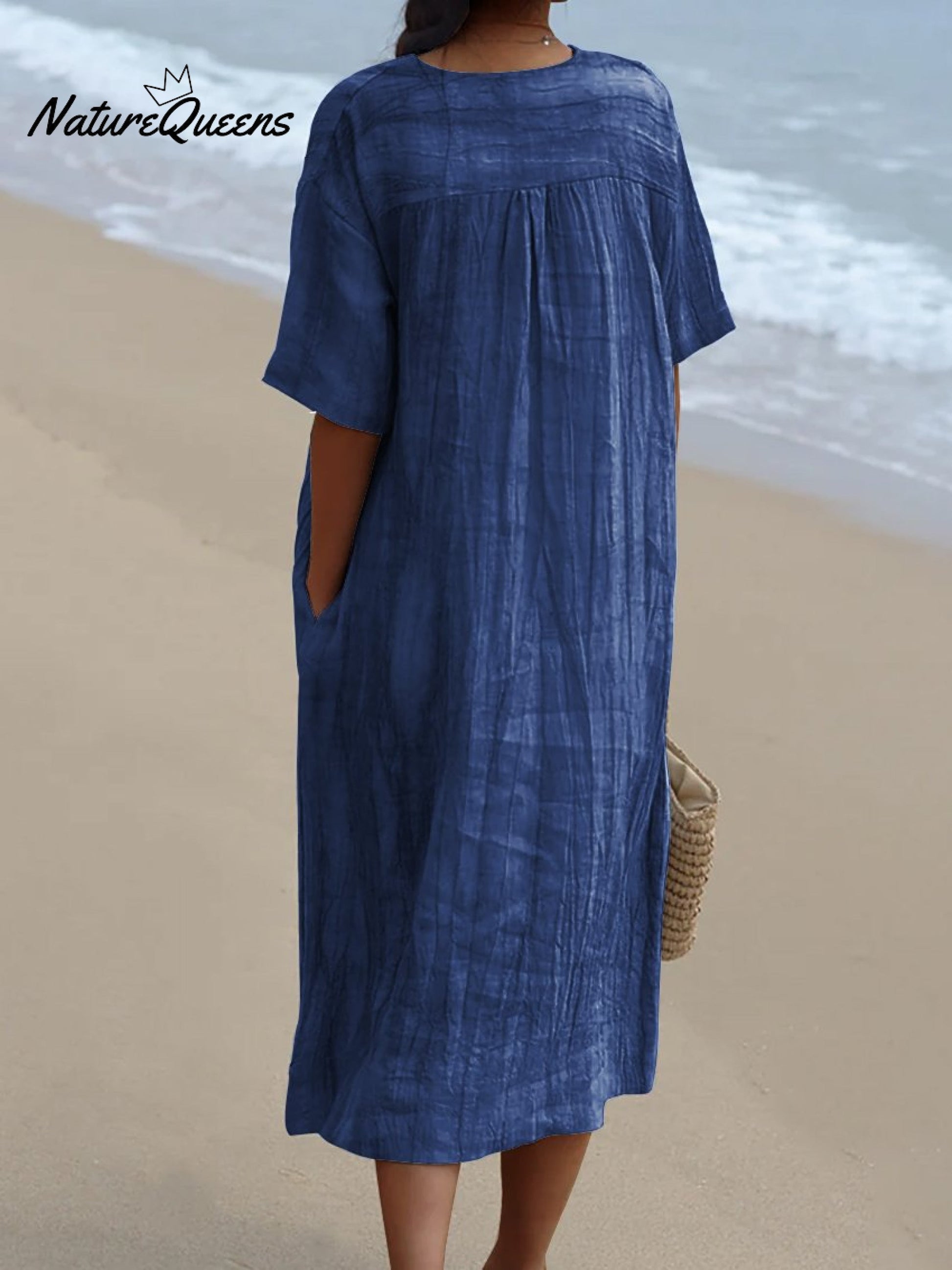 Women's Denim Blue Geometry Watercolor Splash Fluid Art Print Flowy Dress