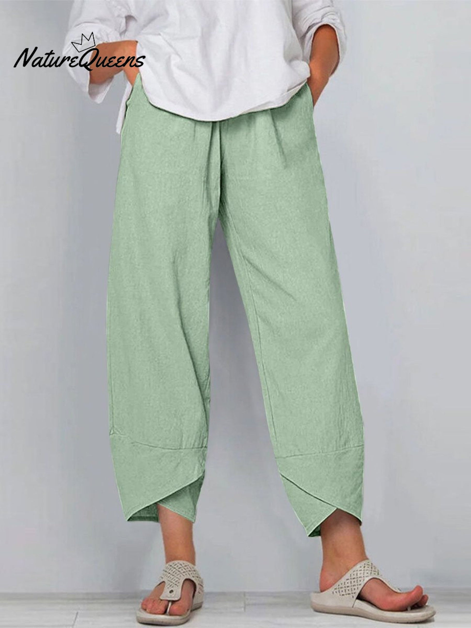 Women's Solid Color Loose Elegant Casual Simple Cotton And Linen Ninth Pants